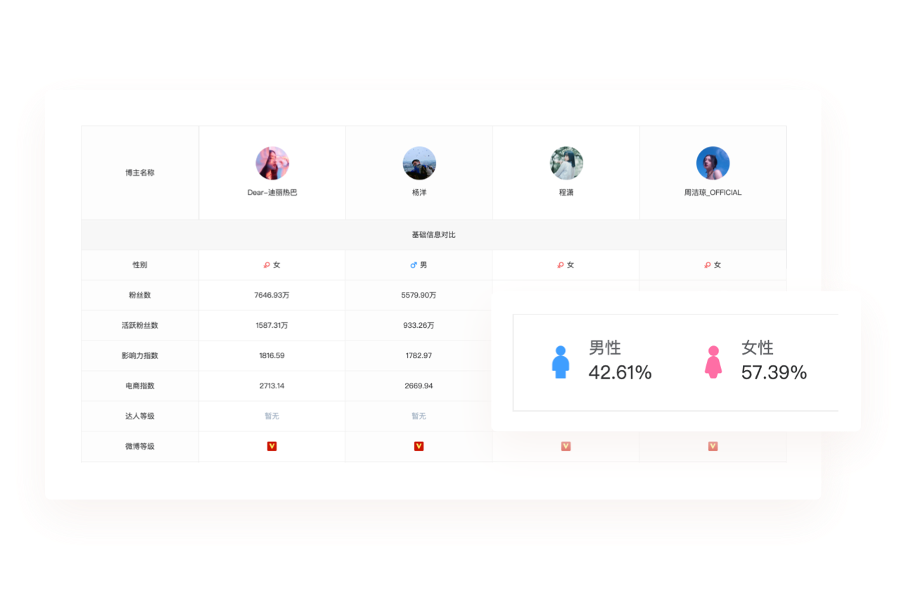 多項內(nèi)容全面解讀達(dá)人,歷史內(nèi)容追蹤,AI去水粉絲預(yù)估,智能算法評估達(dá)人價值,有效挖掘優(yōu)質(zhì)達(dá)人